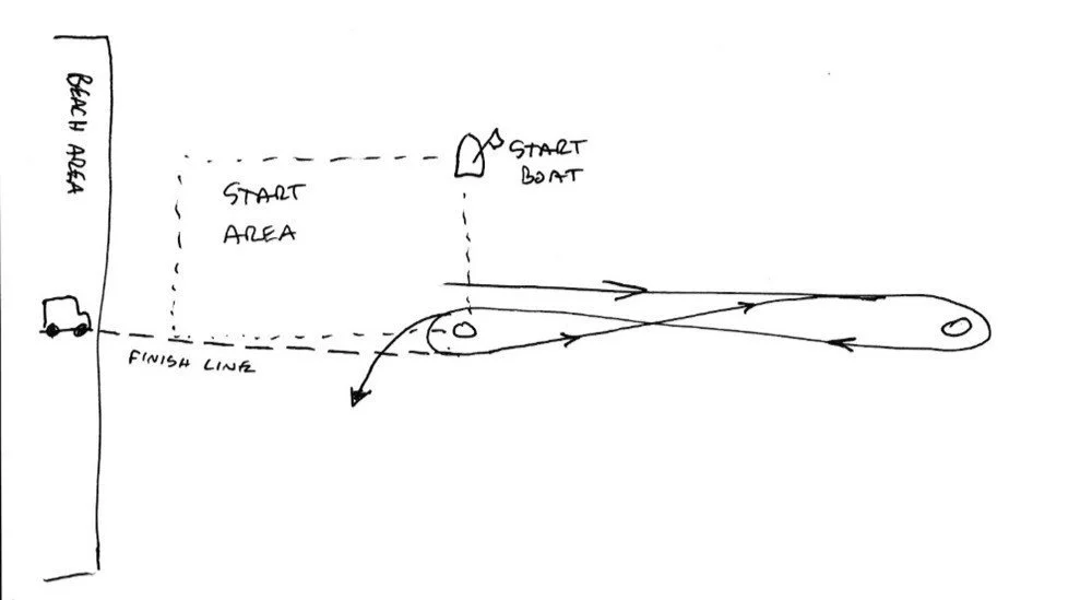 The length of legs will be at the discretion of the organizing authority. The start/finish may be on a different tack to this diagram.